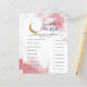Niedlich über das Moon Thema Babydusche "Der Preis ist richtig" Spielkarte mit Imitaten goldzackigen Mond mit rosa Aquarell Hintergrund. Die Texte sind bearbeitbar. Perfektes Spiel während der Dusche. Es listet Babynahrung auf und frage den Gästen, den Preis zu erraten. Wer den Preis am nächsten schätzt, gewinnt!