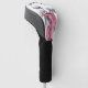 This cute modern golf head cover features the top part of a pink golf bag with clubs sticking out, creating a fun and stylish look. The name monogram is curved around the top for a personalized touch, keeping the design simple and chic. The soft watercolor style and pink tones make it perfect for the lady golfer in your life. Ideal as a thoughtful gift for Christmas, birthdays, Mother’s Day, or any special occasion.