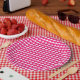 Einfache und Niedliche Herz-Muster Papier Teller mit einem sich wiederholenden Muster von kleinen rosa Herzen. Dieses Design kann um Text ergänzt werden, um ihm eine persönliche Touch zu geben.