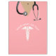 Mit dieser Personalisierten Clipboard zeigen Sie Ihren Spaß mit der rosa Krankenschwester Scrub Top. Es ist beidseitig mit einem hellrosa Hintergrund und einem weißen Kadukus-Symbol gestaltet. Ein Stethoskop ist um den Nackenbereich herum, um einem Peelingtop zu ähneln. Passen Sie Ihren persönlichen Namen oder Firmennamen an.