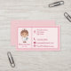 Visitenkarte für Krankenschwester oder Pflegepersonal. Auf der links ist ein Bild einer Krankenschwester mit einem Clip-Board, unter der Krankenschwester sind Vorlagen in rosa Schrift für Ihren Namen und Job-Titel. Auf der rechten Seite finden Sie Vorlagen für Ihre Geschäftsdetails. Die Rückseite, wenn die Karte rosa mit pinken Punkten ist.