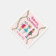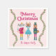 Niedliche und lustige Weihnachtsserviette mit handgezeichneter Darstellung von Katze, Hund und Maus als Nussknacken Ballettfiguren. Der Hintergrund ist rosa.