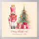 Sehen Sie diesen rosa Nutcracker stehend am Heiligabend neben einem hübsch dekorierten Urlaubbaum und rosafarbenen Geschenkartikeln. Die Szene ist ein Vintages Aquarelldesign. Wir halten es für ziemlich niedlich und hoffen, dass Sie damit einverstanden sind. "Frohe Weihnachten!" ist der Gruß. Sie können es ändern. Stellen Sie sicher, dass Sie den Familiennamen und das Datum des Beispiels bearbeiten.
