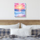 Pink Ocean Waves Sunset Watercolor Canvas Painting