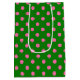 Pink On Green Polka Dots Pattern Design Mittlere Geschenktüte