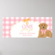 Celebrate your little one’s golden year with this adorable “One Golden Year” birthday poster! Featuring a sweet golden retriever puppy with a pink gingham bow, a cheerful yellow ribbon accent, and a soft pink checkered background, this personalized first birthday banner poster is the perfect statement piece for your celebration.