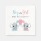 Add charm to your gender reveal celebration with this sweet design featuring two playful baby elephants—one in pink, one in blue—each holding a matching balloon. The soft colors and adorable artwork make these napkins a perfect match for a “boy or girl?” themed party. All text can be customized for your special day.