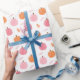 Niedliche, rosa und orangefarbene Kürbis und Blatt-Packpapier Rolle. Diese einzigartige Geschenkpackung eignet sich perfekt für eine Herbstdusche oder Geburtstagsfeier.