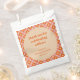 Dieses lebendige und lustige Fevor-Tasche-Design ist ideal, um Ihre Veranstaltung mit einer Retro-Drehung zu versehen. Das geometrisch orange und rot gestaltete Muster umrahmt ein zartes, beigefarbenes, kreisförmiges Zentrum mit fett orangefarbener Typografie, in der es heißt: "Danke, dass du mit uns gefeiert hast!" Mit dem Namen und dem Datum Ihrer Veranstaltung abgestimmt, ist es eine schicke und unvergessliche Art, Gastgeschenke für Brautpartys, Geburtstage oder andere Feiern zu verpacken. Dieses Design bringt eine warme, Vintag inspiriert Ästhetik zu jedem Anlass!