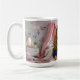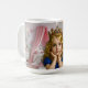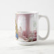 Artistic mug featuring a golden-haired girl with a jeweled crown in a dreamy pink palace bedroom, symbolizing innocence, beauty, and royal imagination.