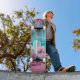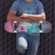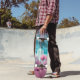 Ein Infrarot-Foto in einem Londoner Park. Die rosa Palmen und der blaue Himmel erinnern an einen angenehmen Tag in Florida - vermisst ist nur ein rosa Flamingo! Dieses Skateboard wurde als Wandkunst entworfen, um vertikal aufzuhängen und die Wand zu erheben.