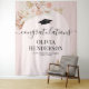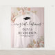 Elegante böhmische Abschluss-Tapisserie mit einem rosa, staubigen Hintergrund mit Blumenargen, wasserfarbenen, wüstengetrockneten Palmen-Blätter, Pampas-Gras, Mörtelgras, dem Titel "Gratulationen", ihrem Namen, ihrer Schule und Klassenjahr.