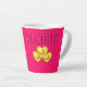 Mein Design zeichnet sich durch einen lebhaften rosa Hintergrund aus, mit Text in einer Mischung aus rosa und schwarz, ergänzt durch weiße Kanten. Drei goldene Herzen am unteren Rand sind durch dünne goldene Saiten verbunden, die der Gesamtkomposition eine Touch Eleganz verleihen.