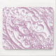 Eine Kollektion von pastellrosafarbenem Papier, das die Blume der Tagespresse und die wirbelnden Motive auf weißem Hintergrund abdeckt.