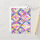 Ein schöner, rosa und gelber Fliesendecker. Ein Stoff-Schrott-Patchwork-Quilt. Die perfekte Postkarte, um Grüße an Quilters und Freunde zu schicken, die Liebe zu nähen.