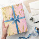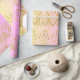 Dieses Verpackungspapier zeichnet sich durch ein spielerisches tropisches Design mit goldenen Blätter aus Palmen aus, die auf einem weichen rosa und pfirsichfarbenen Hintergrund verteilt sind. Die glänzenden goldfarbenen Blätter zeichnen sich durch eine luxuriöse Touch aus, während die verstreuten abstrakten goldfarbenen Pinselstriche dem Design eine lebendige und dynamische Atmosphäre verleihen. Die warmen Pastelltöne schaffen eine fröhliche und gemütliche Atmosphäre, die sich perfekt für festliche Anlässe, sommerliche Geschenke oder tropische Feiern eignet. Die Kombination aus Eleganz und Spaß sorgt dafür, dass dieses Verpackungspapier jedem Geschenk ein besonderes und lebendiges Gefühl verleiht.