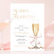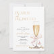 Perlen & Prosecco Gold minimale Brautdusche Einladung mit einem rosa Bogen.