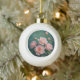Pink Peonies Artwork on Emerald Green Keramik Kugel-Ornament