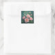 Pink Peonies Artwork on Emerald Green Quadratischer Aufkleber