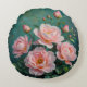 Pink Peonies Artwork on Emerald Green Rundes Kissen
