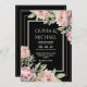Pink Peonies Floral Black Elegant Wedding Einladung