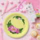 Dieses Design besticht durch einen Garten mit hübschen Blume in Rosatönen, die von Grünpflanzen gesäumt sind. Sie können diese Teller anpassen, indem Sie die Hintergrundfarbe ändern.