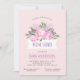 Diese Brautdusche lädt mit einer schönen Blumengrafik im Frühling ein. Ein weißes Banner mit prächtigen rosa Pfannkuchen, grünen Blätter und dunklen lila Blütenknospen.