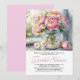 A charming bouquet of pink peonies, white daisies, and baby's breath rests in a clear mason jar filled with water, its stems elegantly visible through the glass. Set on a sunlit windowsill with scattered petals and a single peony nearby, the scene radiates soft romance and rustic elegance—perfect for a bridal shower celebration. The mason jar adds a touch of vintage charm, evoking a cozy, heartfelt gathering where love blooms as beautifully as the flowers. The back of the card is pale pink. Personalize with your information.
