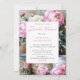 A romantic still life of blooming peonies sets the tone for celebration and elegance for this bridal shower invitation. Three vintage-style tin cans, adorned with soft floral patterns, cradle lush pink and white peonies in full bloom, with delicate buds and verdant leaves spilling gently across a wooden surface. The central bouquet radiates warmth and charm, while scattered blossoms and a softly painted floral backdrop evoke timeless beauty. This graceful composition invites guests to a bridal shower filled with love, laughter, and floral enchantment. The back of the card is a full version of the beautiful floral illustration. Personalize with your own information.
