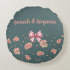 Ein handgezeichnet nahtloses Muster von zarten, rosafarbenen Pfannenbäumen auf gedämpftem aquamarinem Hintergrund. Erschaffen, um Eleganz und Charme zu bringen, perfekt für Stoffe, Geschenkpapier und Schreibwaren.
