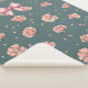 Ein handgezeichnet nahtloses Muster von zarten, rosafarbenen Pfannenbäumen auf gedämpftem aquamarinem Hintergrund. Erschaffen, um Eleganz und Charme zu bringen, perfekt für Stoffe, Geschenkpapier und Schreibwaren.