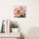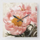 Pink Peony Blume Marble Script Hintergrund Quadratische Wanduhr