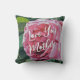 Pink Peony Blume mit grünen Blätter und Wörtern Kissen
