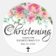 Pink Peony Floral and Cross Christening Runder Aufkleber