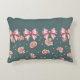 Ein handgezeichnet nahtloses Muster von zarten rosa Zwergen und Bogen auf gedämpftem aquamarinem Hintergrund. Erschaffen, um Eleganz und Charme zu bringen, perfekt für Stoffe, Geschenkpackung und Bettwäsche.