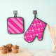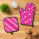 Pink Peppermint Snowflakes Candy Cane Stripname Ofenhandschuh & Topflappen-Set