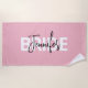 Erstellen Sie ein personalisiertes Badetuch für den Bachelorette Wochenendaufenthalt der Braut. Schwarz-Weiß Typografie Text Design auf einem soliden rosa Hintergrund Farbe. Auf diesem Strandtuch kann das Textdesign leicht an die Brautmädchen angepasst werden, die mit einem kühnen Etikett wie TRIBE oder SQUAD versehen sind. Als meine Schwester die Krankenschwester abschloss, war dies das einfache, moderne Typografie-Design, das ich für sie entworfen hatte.