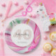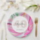 Pink Petal Floral Wasserfarbe Mit Monogramm Pappteller