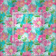 Ein nahtloses Preppy-Muster mit rosa Blume auf einem minzigen grünen Hintergrund mit kleinen orangefarbenen Punkten. Das Design ist handbemalt und verbindet zauberhafte Blumenelemente mit spielerischen Punkten, um einen frischen und stilvollen Effekt zu erzielen.
