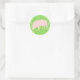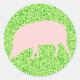 Dieses Set von runden Aufklebern ist mit einem Cartoon-Stil rosa Schwein. Er hat seinen Kopf abwärts bereit, sich das Essen, das er finden kann, zu holen. Der Hintergrund ist eine Mischung verschiedener Grüntöne, um den Eindruck von Gras zu schaffen.