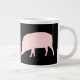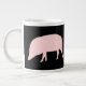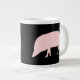 Diese phantastische Tasse zeichnet sich durch einen Cartoon Stil rosa Schwein. Er hat seinen Kopf abwärts bereit, sich das Essen, das er finden kann, zu holen.