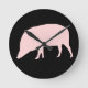 Diese phantastische Uhr besticht durch ein rosa Cartoon. Er hat seinen Kopf abwärts bereit, sich das Essen, das er finden kann, zu holen. Der Hintergrund ist schwarz, um das Schwein bestmöglich zu zeigen.