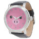 Ein niedliches, hellrosa magentafarbenes Baby-Ferkel Gesicht mit rosa Rundnase und glänzenden schwarzen Augen. Ein originelles digitales Kunstdesign.