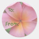 Eine rosa Plumeria, duftende hawaiianische Blume, die oft in einem Lei zu finden ist, schmückt diese Geschenketiketts. Nutzen Sie sie für Weihnachten- und Feiertagsgeschenke oder für tropische Party, Hochzeiten oder Duschen.