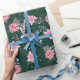 Dieses elegante und festliche Verpackungspapier ist vielseitig einsetzbar und kann für Geschenke oder Kunst- und Kunsthandwerksprojekte verwendet werden. Es ist perfekt für Weihnachten und die Ferienzeit. Das Design ist mit Aquarellpinken Poinsettia-Blume auf dunkelgrünem Hintergrund gestaltet.
