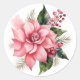 Sticker is shown in the round with a lovely pink poinsettia watercolor print.