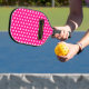 Mit diesem Pickleball-Paddel mit seinem schicken, rosafarbenen und weißen Polka-Dot-Design, das in eleganter Typografie mit Ihrem Namen schön personalisiert ist, spielen Sie stilvoll. Auch macht ein fabelhaftes Geschenk für Pickleball-Enthusiasten!