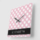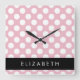 Pink Polka Dots, Polka Dot Pattern, Ihr Name Quadratische Wanduhr