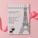 Zu den attraktiven Geburtstagsfeiern gehört eine niedliche Vektorgrafik eines rosa und schwarz-französischen Poodles und der Eiffelturm auf einem rosa-weißen Streifen-Muster-Hintergrund.