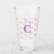Sweet Retro-rosafarbene Püree personalisiert mit einer gürtelgrauen Monogramm-Wasserflasche. Imitate stehen. Ein süßes Glas, um Ihren Lieblingsdrink zu genießen.